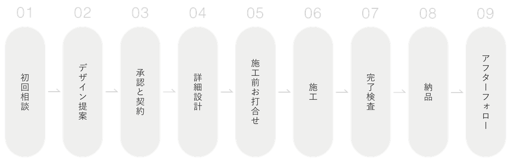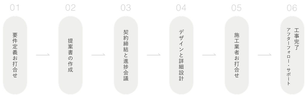 施工者様とデザイン詳細に関してのお打合せを行います。工事スケジュールやエンドユーザーとの調整を含めた計画を策定し、透明性を保ちながら進めます。