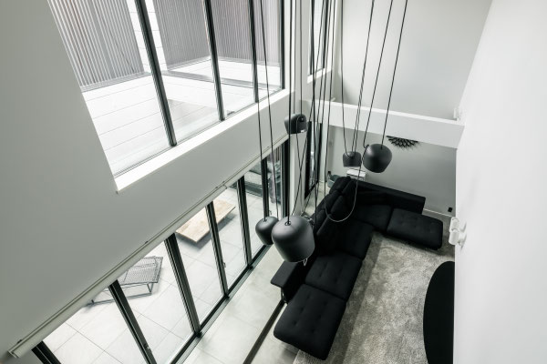 都市の喧騒を背景にしながらも、静謐で洗練された住空間を構築することを目指したプロジェクト。クライアントが持つコンテンポラリーな家具やアートが、建築と共鳴しながら活きる空間をつくることが求められました。