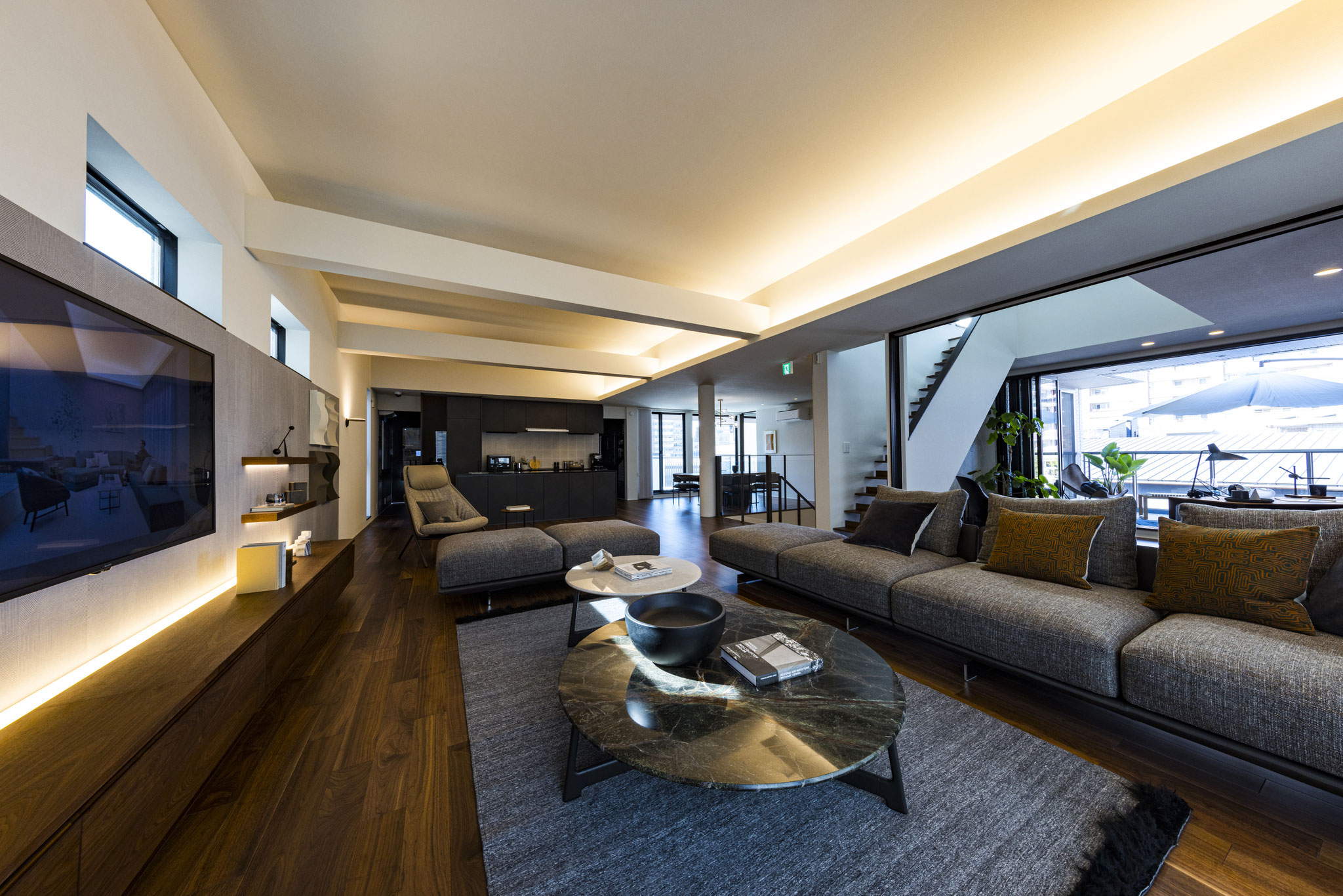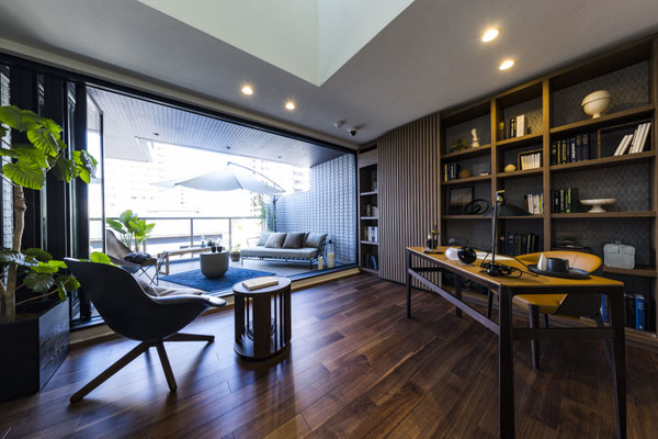 プライベート空間でありながら、客人を招く“迎賓の間”としての品格も備えた、都市生活者のためのリビングデザインです。